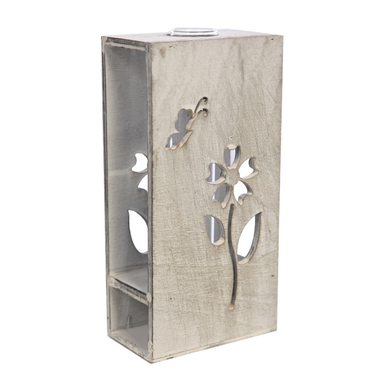 FLORERO MADERA Y PROBETA 20CM. Sin cuidados extra. Belleza sin mantenimiento. ¡Te encantará!