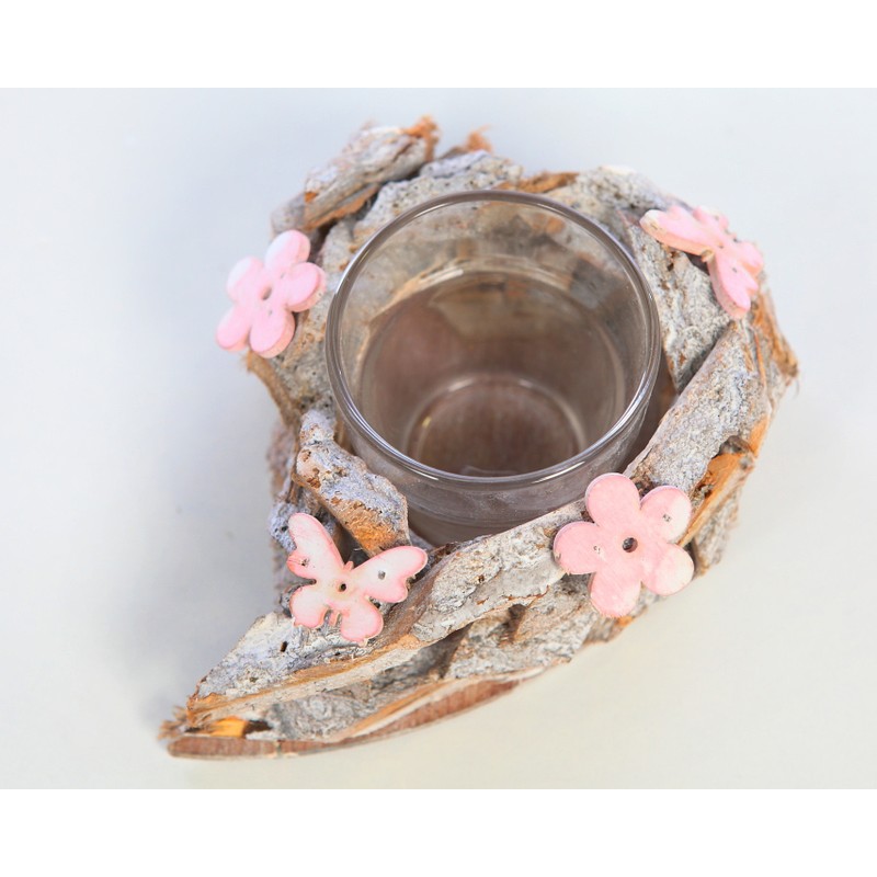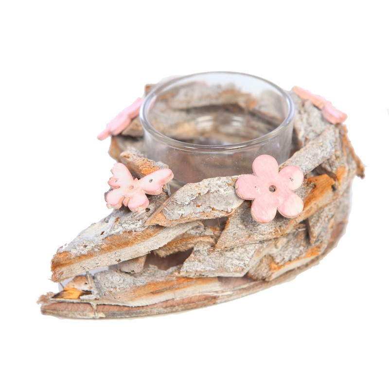 PORTAVELAS CORTEZA Y CRISTAL 9CM. Diseño realista. Belleza sin mantenimiento. ¡Te encantará!