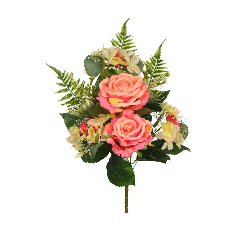 RAMO ROSAS Y HELECHO ARTIFICIAL 46CM